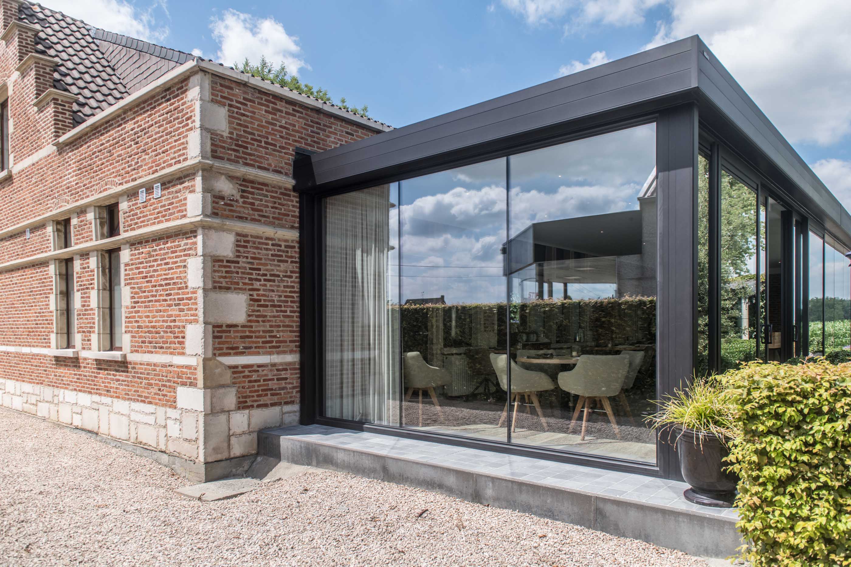 Voor sterrenchef Wout Bru realiseerde Willems Veranda’s een stijlvolle uitbreiding van Le Grand Verre. Dankzij de grote glaspartijen genieten gasten er niet alleen van een verfijnde maaltijd, maar ook van een adembenemend uitzicht over het dal van Durbuy. Een perfect voorbeeld van hoe een horeca-uitbreiding op maat niet alleen extra ruimte creëert, maar ook de totaalbeleving naar een hoger niveau tilt.