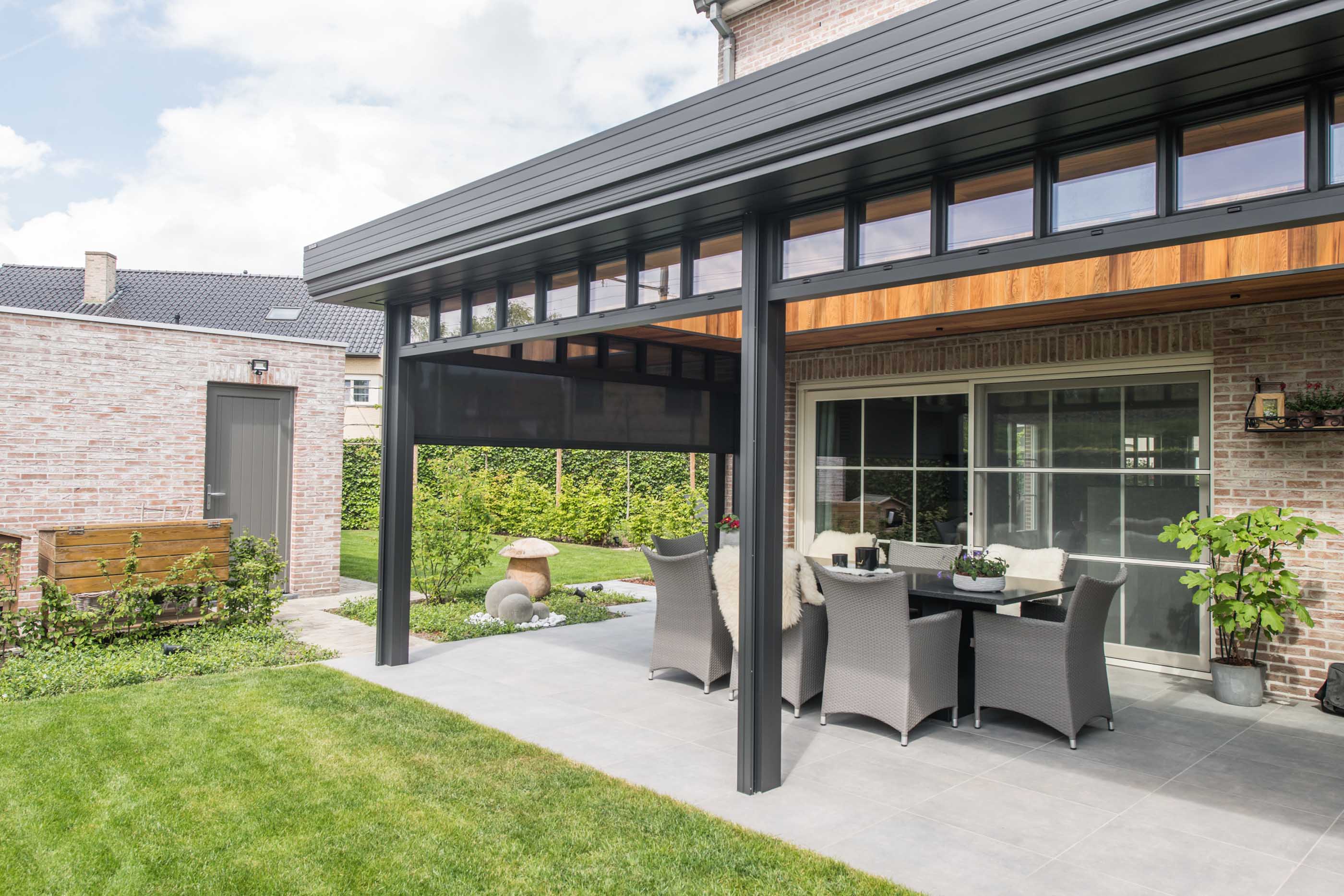 De uniforme stijl is een grote meerwaarde voor je woning en een veranda-pergola kan grote overkappingen aan. Zo behoud je de natuurlijke lichtinval maximaal.