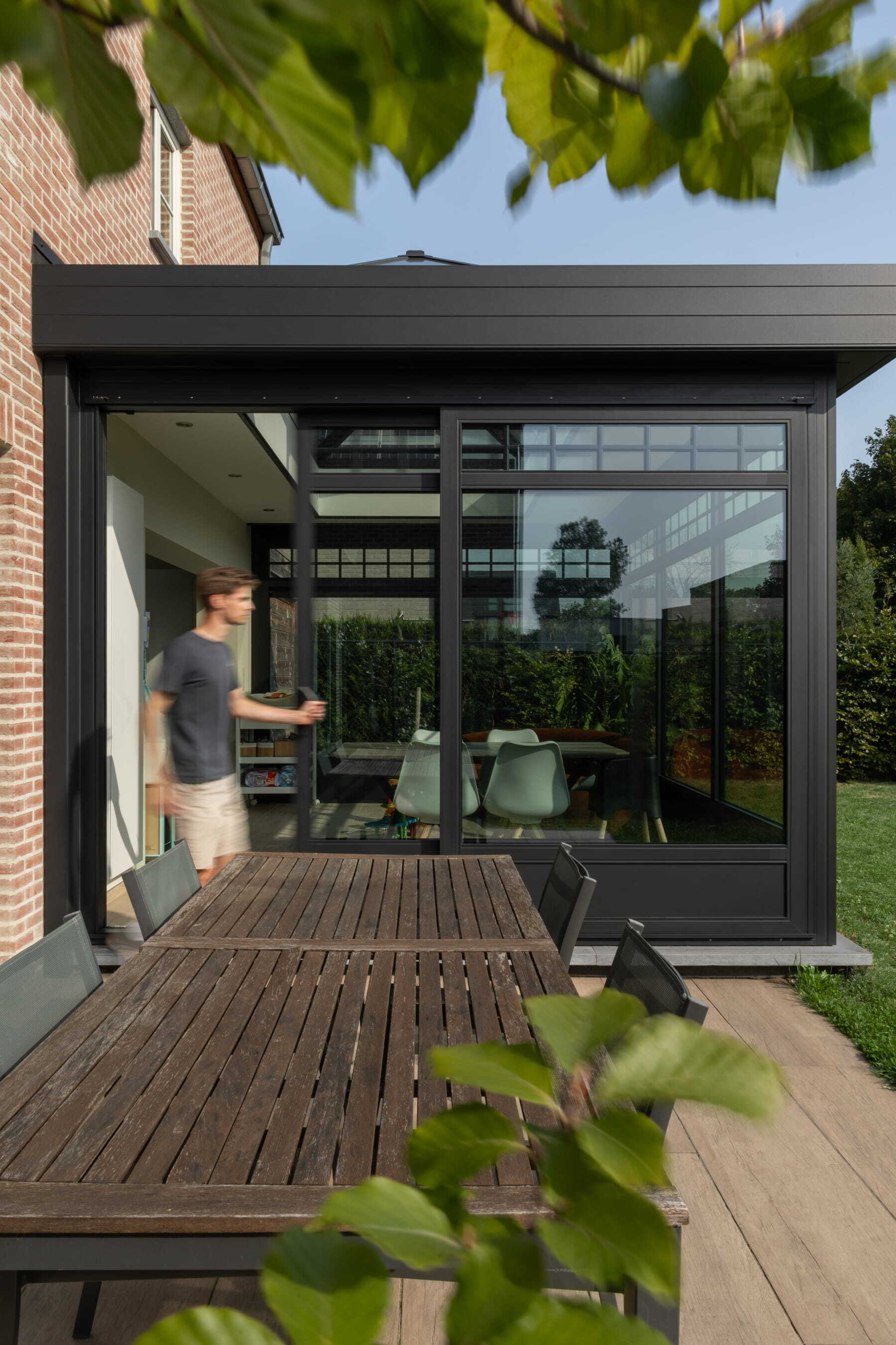 Deze veranda in Temse laat zien hoe architectuur en wooncomfort elkaar versterken. Dankzij het glazen dak en de royale glaspartijen baadt de ruimte in daglicht, wat zorgt voor een open, luchtig gevoel doorheen de vier seizoenen. De strakke aluminium structuur vormt een harmonieus geheel met de woning, terwijl het interieur uitnodigt tot rust en gezellig samenzijn. Een verfijnde uitbreiding voor wie graag leeft in het licht.